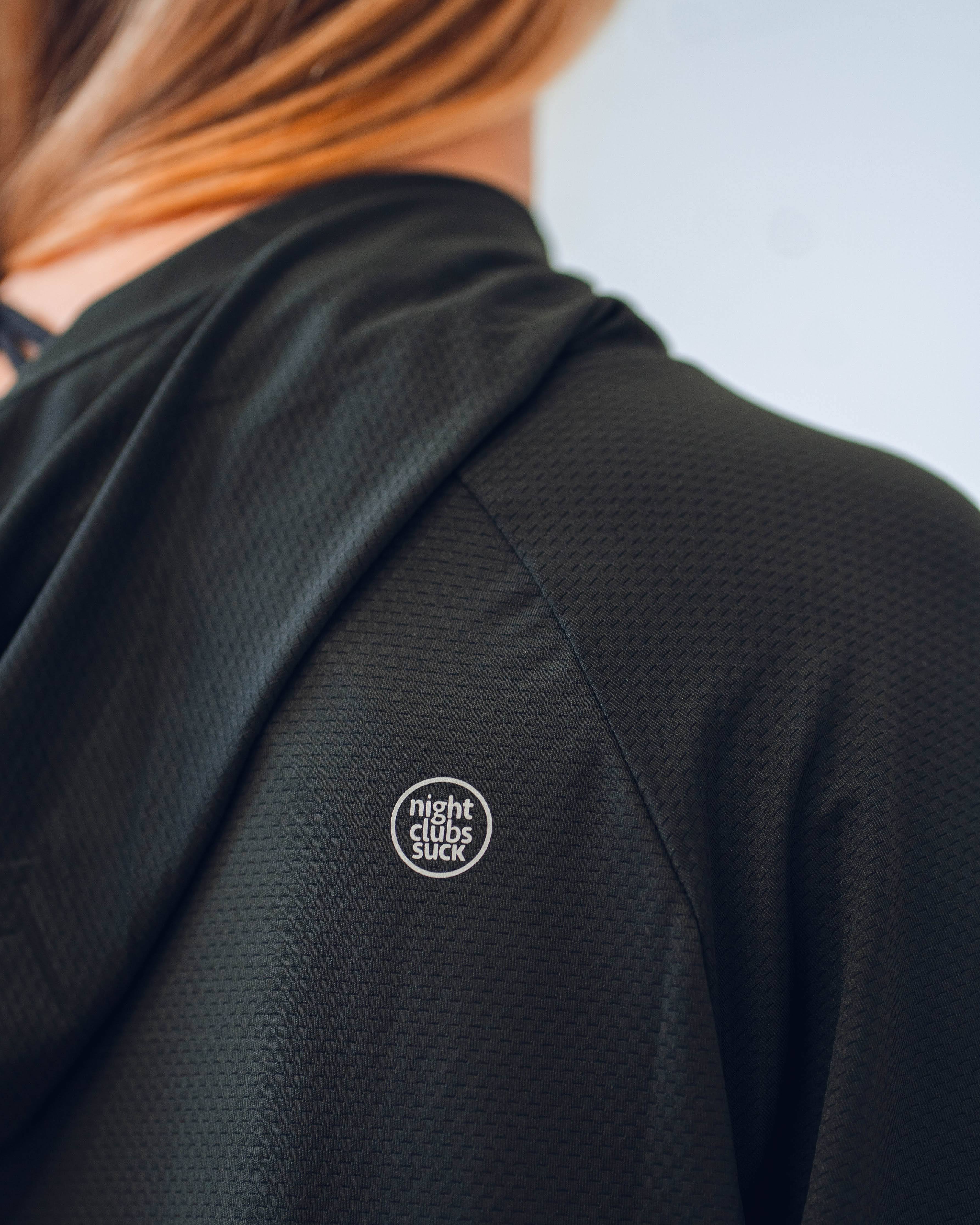 Powered by Nightclubs Suck AeroDry™ Technology.  This is the hoodie built for those who endure.